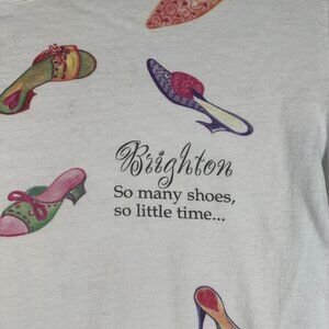 Brighton Women’s One Size White If The Shoe Fits T-Shirt Short Sleeve. 100% Preshrunk Cotton