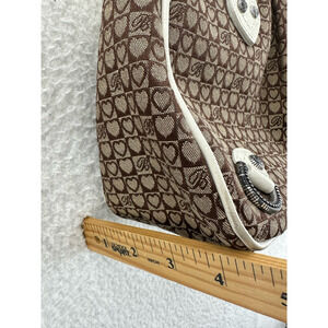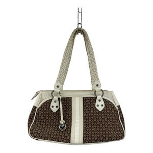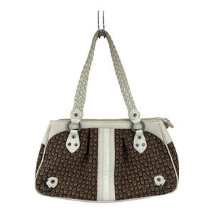 Brighton Womens Satchel Handbag Brown White Textile Monogram Braided Straps M