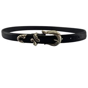 Brighton Womens Scroll Buckle Belt Size XL Black Leather Reptile 24503 Silver