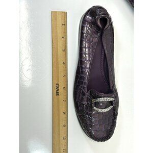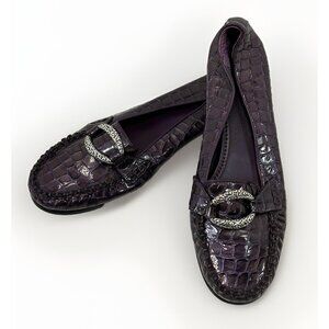 Brighton Women’s Size 8.5 M Medley Horsebit Loafers Purple Croc Leather Shoes