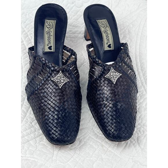 Brighton Women's Size 8M Black/Brown Abby Mules Leather Slip On Sandals