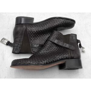 Brighton Women's Woven Leather Ankle Boots Brown Size 7.5M New Without Box