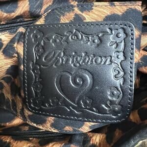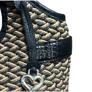 Brighton Woven Tan Straw Shoulder Bag Handbag Purse Black Croc Leather Handles
