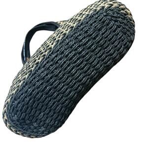 -High quality black and tan straw, woven bag with croc leather handles and magnetic flap closure.
