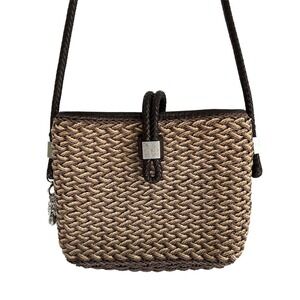 Brighton Woven Textile Braided Shoulder Purse With Leather Trim