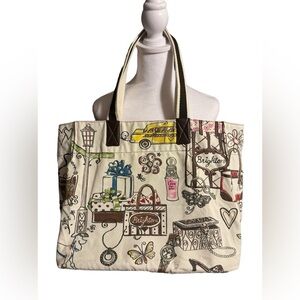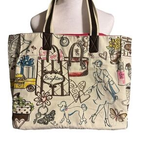 Brighton XL Boulevard City Poodle Print Heavy Canvas Tote Bag