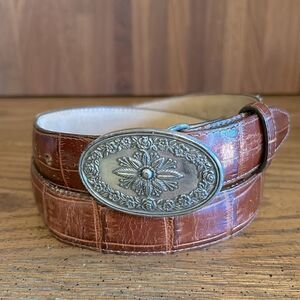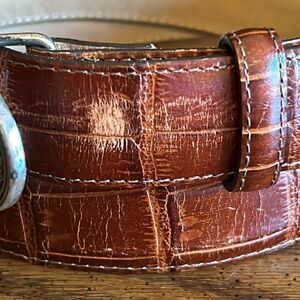 Brighton Y2K VTG Croc Embossed Brown Leather Belt Silver Oval Buckle 36.5”