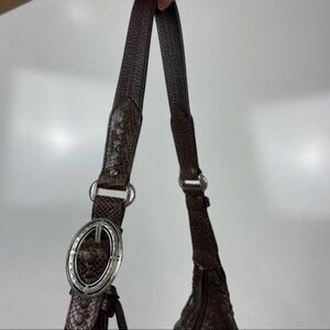 Brighton Ziptop Embossed Buckle Hobo Shoulder Bag