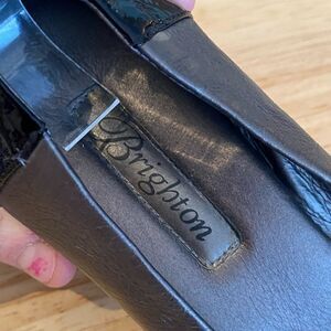 Brighton black and bronze gray slip on rounded toe kitten heels Sz 8