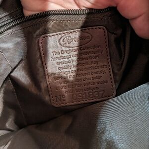 Brighton black brown woven leather shoulder bag. Tassel accent. Small indentation on the bottom (see photo)