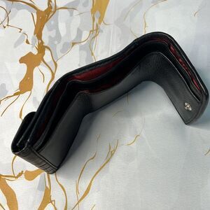 Brighton brand Black leather wallet with silver front detail excellent used condition measures 3 inches by 3 inches folded together