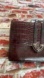Brighton, brown leather crocodile clutch with silver detail good used condition. Does have a spot. If you want to attach a long handle could be used as a clutch or a large size wallet it has a spot for cards and all the essentials 8 inches across by 6 inches tall, one and a half inches wide