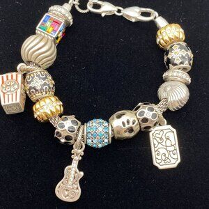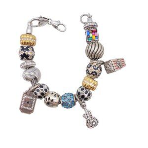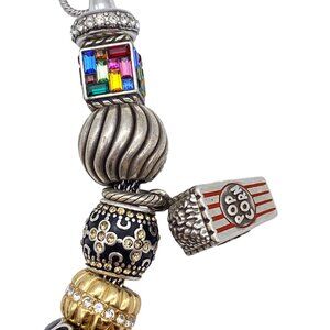 Brighton charm bracelet Popcorn guitar ticket charms rhinestone bling 8" 14 char