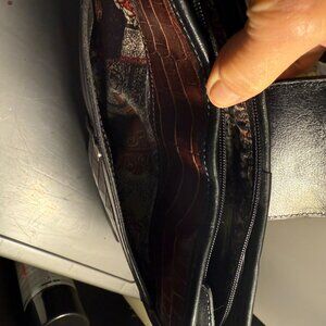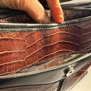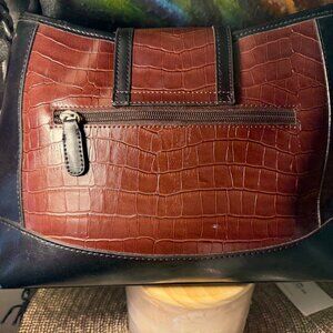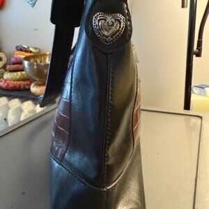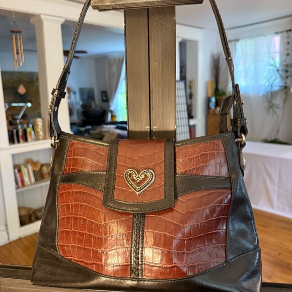 Brighton crocodile embossed vintage bag brown and black with Heart emblems.