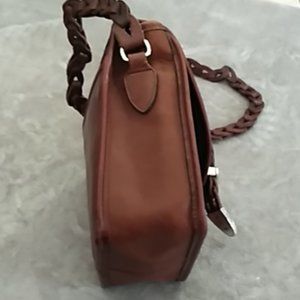 Vintage leather crossbody from Brighton, chestnut brown with crocodile pattern on closing flap. Silver buckle hardwhere on both the flap and strap. Braided chain like leather strap, shows signs of wear. bought and never used, beautiful purse.