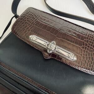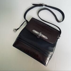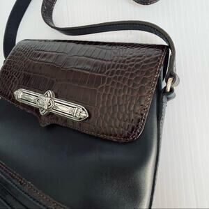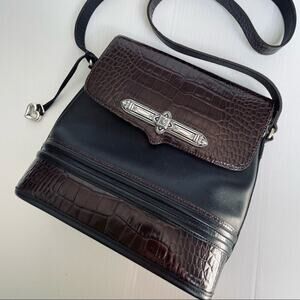 Brighton crossbody purse leather black & brown crocodile print embossed leather
