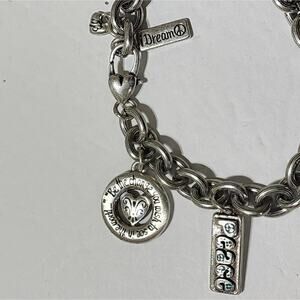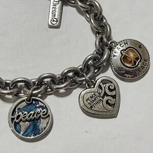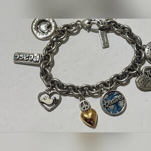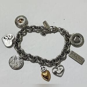 Brighton dove, peace, heart, and love silver plated charm bracelet