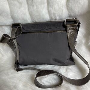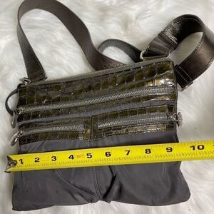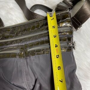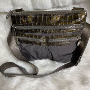 Brighton gray nylon and patent leather pewter croc prints trims shoulder bag