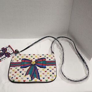 Brighton multi-color heart/bow coquette crossbody NWT flawed