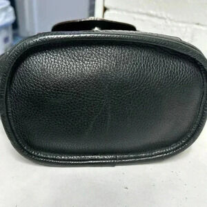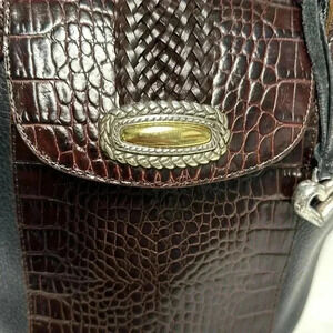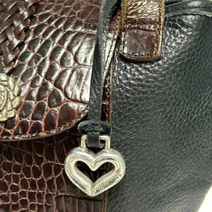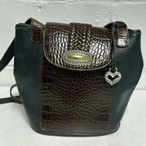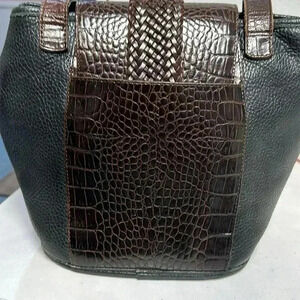 Brighton pebble, black leather with brown alligator embossed double strap bag