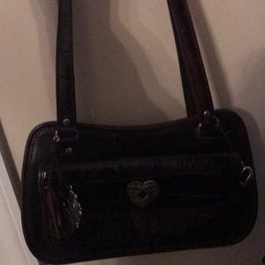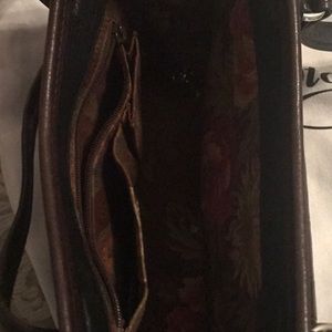 Like new. Used to or three times clamp close your side pocket on the back pocket on the front. Shoulder bag. Straps measure 12 inches. The bag measures 12 inches wide 7 inches tall. No stains. Has beautiful flowered lining inside