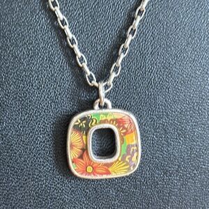 EUC. Pendant is about 3/4” square and the necklace is 18”.