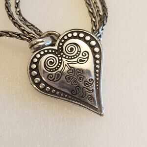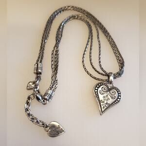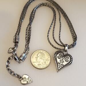 Brighton scrolled etched Heart pendent Multi Strand Necklace