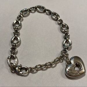 Like new Brighton silver and gold Love heart charm bracelet. EUC, great shape, etched silver link bracelet with silver and gold love heart charm. Approximately 7.5” long with extender, see pictures for details.
