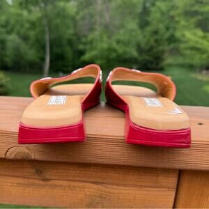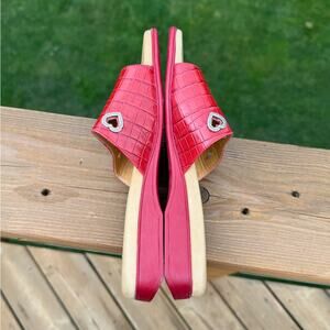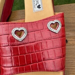 Brighton size 6.5 Yoko Red Croc Embossed Leather Slide Sandals w/ Heart Charms