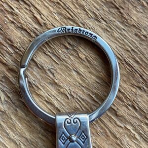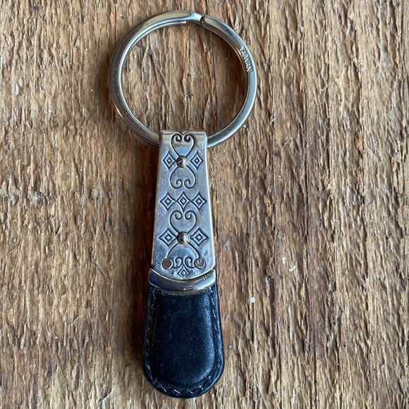 Brighton vintage etched silver and black leather key chain ring. Good condition but some wear on silver, priced accordingly, see pictures for details.