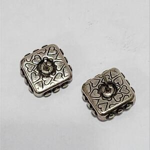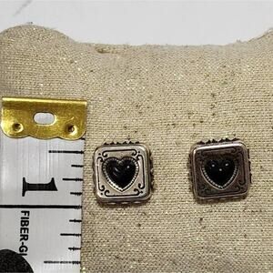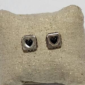 Brighton vintage retired square scrolled black heart post stud earrings