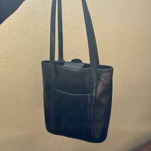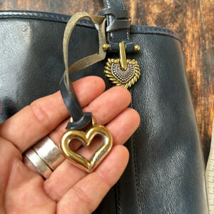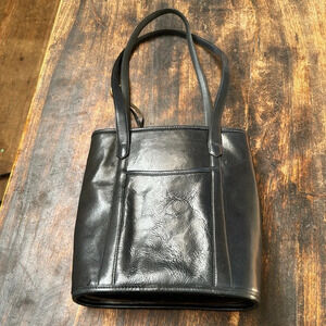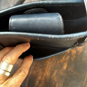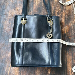 Brighton vtg navy blue leather with gold hardware large bucket back