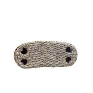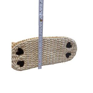• Beige woven straw exterior with heart-shaped protective bottom details