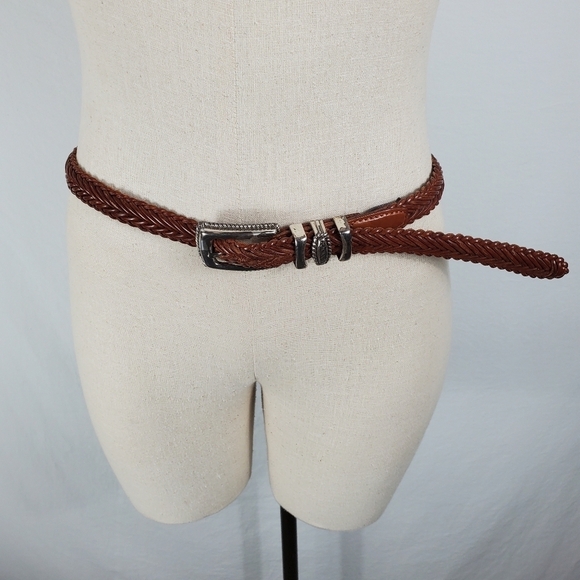 Brighton woven leather skinny embellished silver metal hardware belt size 32