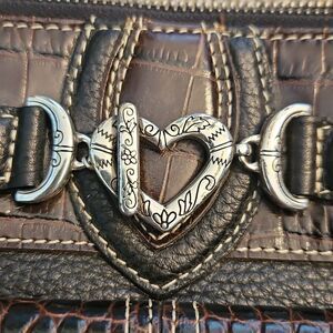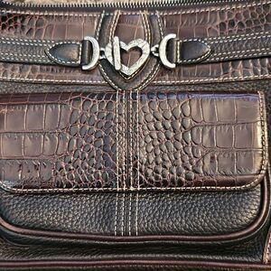 Brighton crossbody, leather purse, croc embossed bag, adjustable strap, heart charm, hands-free bag, organizer purse, built-in wallet, boho leather bag, everyday crossbody, travel purse, Y2K style