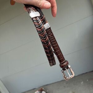 Brighton belt, braided leather, silver buckle, Western chic, classic vintage accessory, reptile embossed leather, heritage style