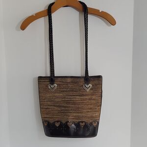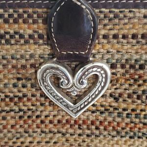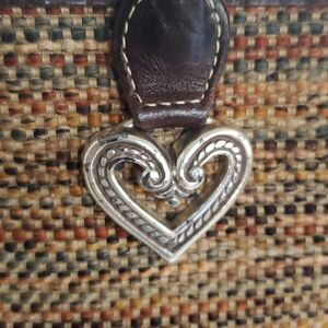 Brighton Bucket Caroline Tweed with Silver Hearts Brown Leather Shoulder Bag