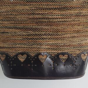 This bag is in good pre-owned condition. The leather on the front has a few scratches. The hearts on the front show some wear. Please see photos.
