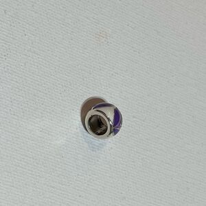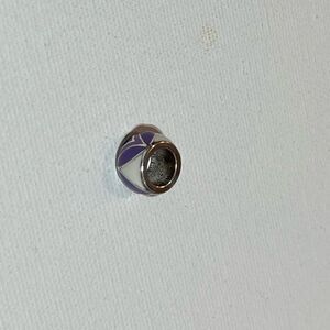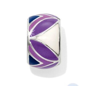 ◦ Add this hand enameled spacer to your charm jewelry for a punch of cool purples and blue in a floral motif