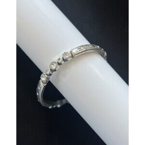 Add a touch of elegance to your outfit with this stunning Brighton Halo Swing Bracelet. Crafted with silver plated metal, this bracelet features a beautiful crystal stones that will surely catch anyone's attention. The bracelet is signed by the famous Brighton brand and is a rare retired piece, making it a valuable addition to your jewelry collection. Measures inside bracelet 2.5"