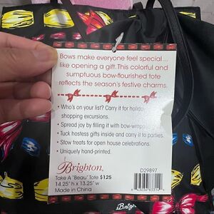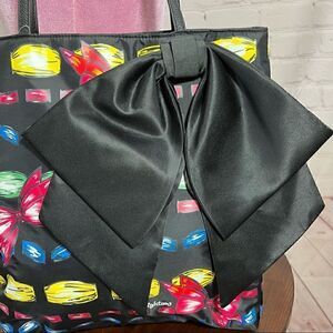 Hand Painted Nylon Tote with huge satin bow leather straps and a snap closure button