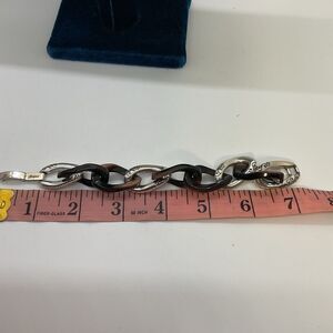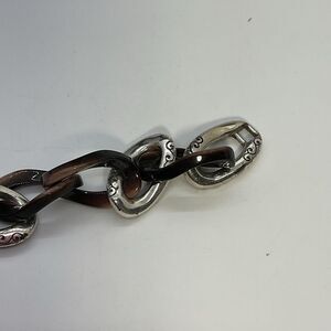 Chunky chain link with silver plates and tortoiseshell look links. Good condition, there is some where on the clasp as shown in photo. Add the listing with the matching necklace to your bundle for a discount!