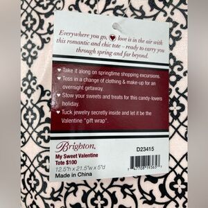 Brighton “My Sweet Valentine “Large Tote with Inside Zip Pocket Approximately Measurement:H 12,5”/W 21,5”/D 5” Inside ,There are Stains on the Lining(Due to Improper Storage) Please See Pictures New/Never Used