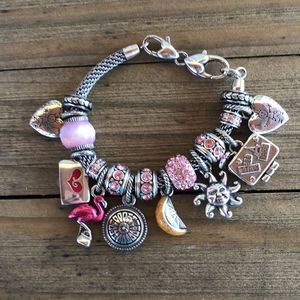 Brighton Pink & Silver Plated Slide Charm Bracelet 17 Charms!