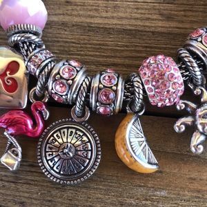 All charms are in EUC with minor scratches. All crystals are intact. Bracelet is in EUC with minor scratches. Sold as a set only. These charms resell for $11-25 individually each. This is not a premade charm bracelet. Please review the pics as they are part of the description. Reasonable offers welcome