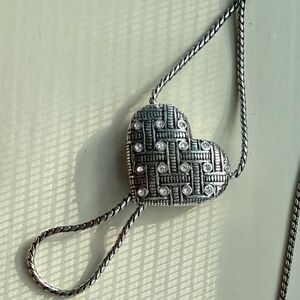 Brighton Reversible Heart Pendant Necklace -eyeglass/badge holder silver plated
