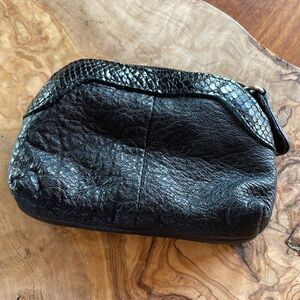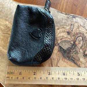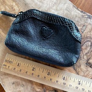 EUC. Brighton Small Black Pebble Leather Coin Purse, Zip Closure. Heart motif on front. Measures approximately 4"x3".