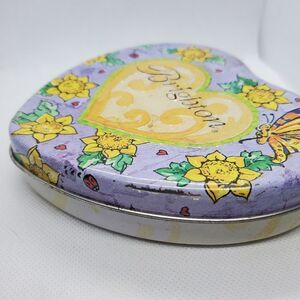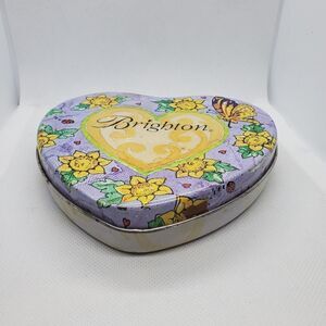 Brighton purple, yellow, and green sunflowers and butterfly design heart shaped tin.