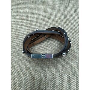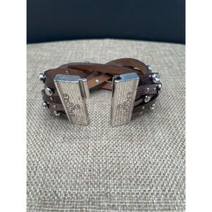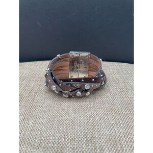 Brighton Thea Harlow Bronze Leather Braided Cuff Bracelet Studded Magnetic 7"