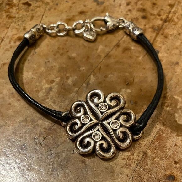 Like new Brighton double strand black cord and silver scrolled hearts bracelet. EUC, great shape, Swarovski Crystal accents, approximately 7.5” long with extender, see pictures for details.